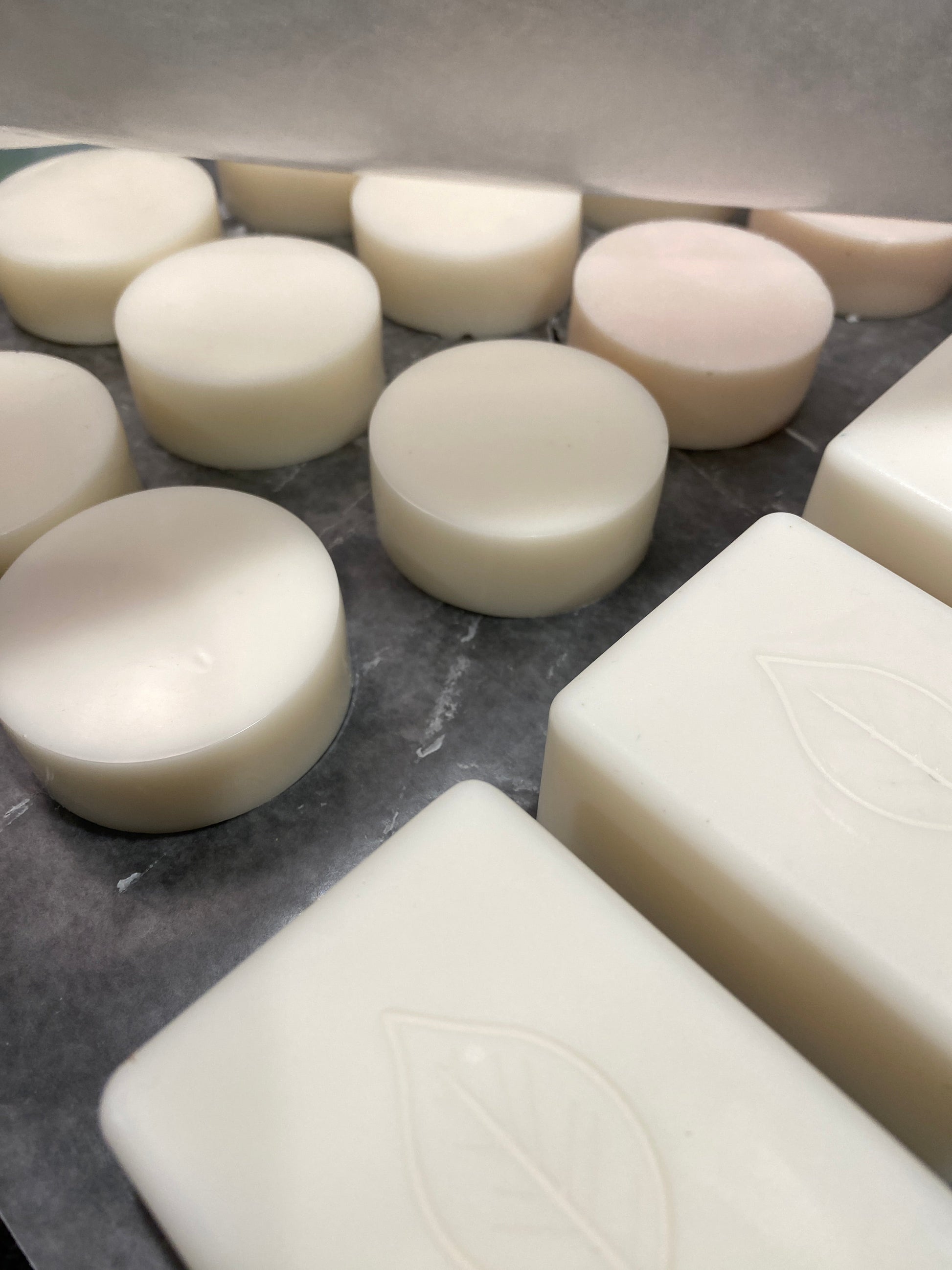 Each bar of our soap is hand poured and measures approximately 2" in diameter. This scented soap is made with a 5% shea butter soap base that is: