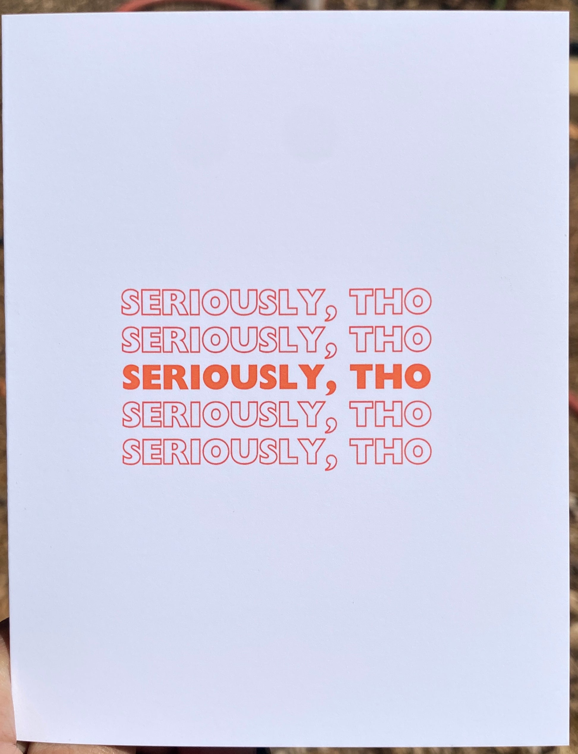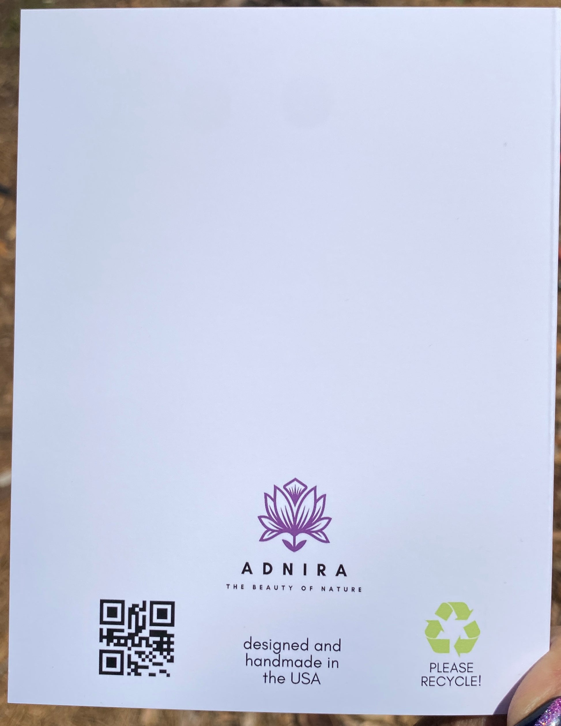Our cards are designed on white 60 lb. premium Red River Paper greeting card stock with a smooth, matte finish. We print limited quantities of our original cards, so get yours before we run out!